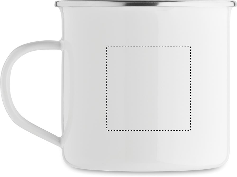 Emaillierter Metall-Becher im Vintage-Look. Spezielle Beschichtung für Sublimationsdruck. Füllmenge: 500 ml.