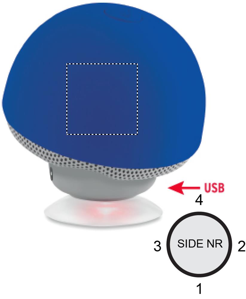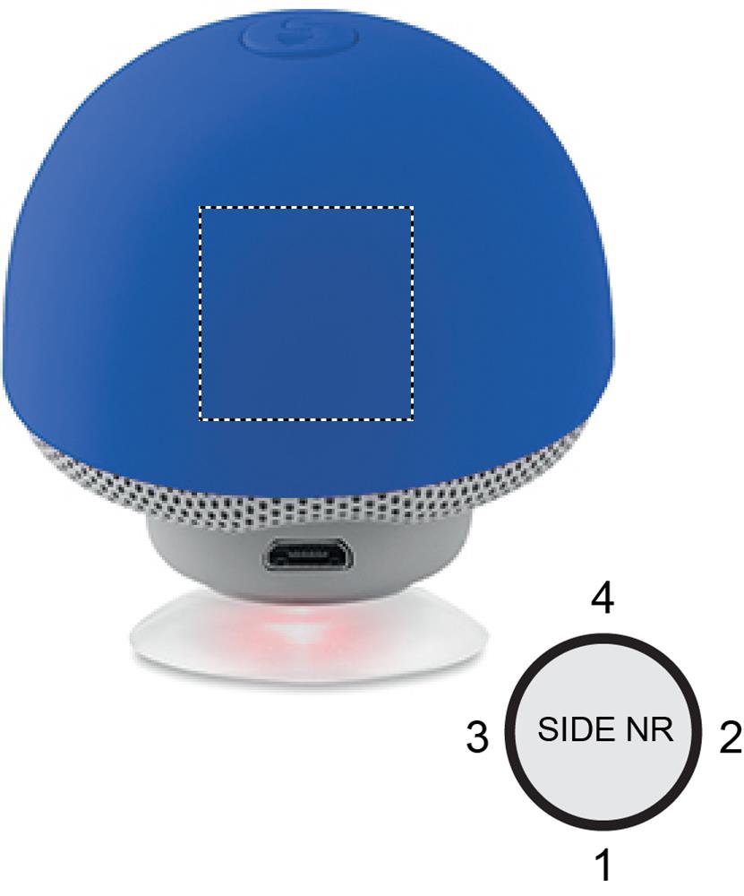 Pilzförmiger 2.1 wireless Lautsprecher/Smartphone Halter aus ABS. Mit Saugnapf. Inkl. wieder aufladbare Lithium 180 mAh. Inkl. USB Ladekabel. Ausgangsleistung: 4 Ohm, 5V und 3W.