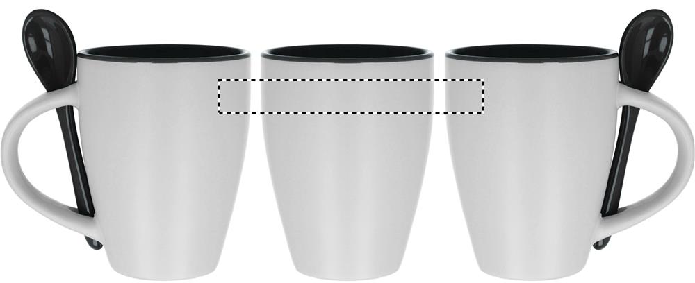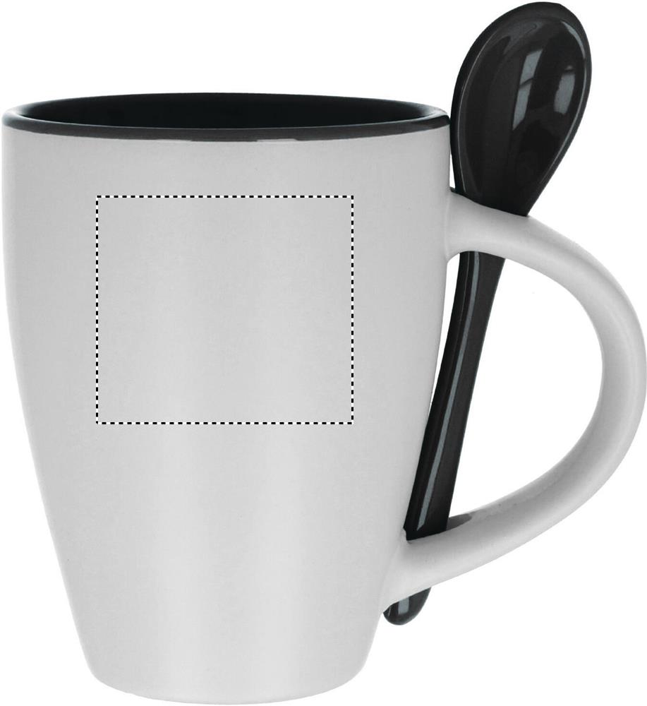Bicolour ceramic coffee mug of 250 ml capacity with colour matching spoon. Individual box 11,5x10,5x9,3cm.