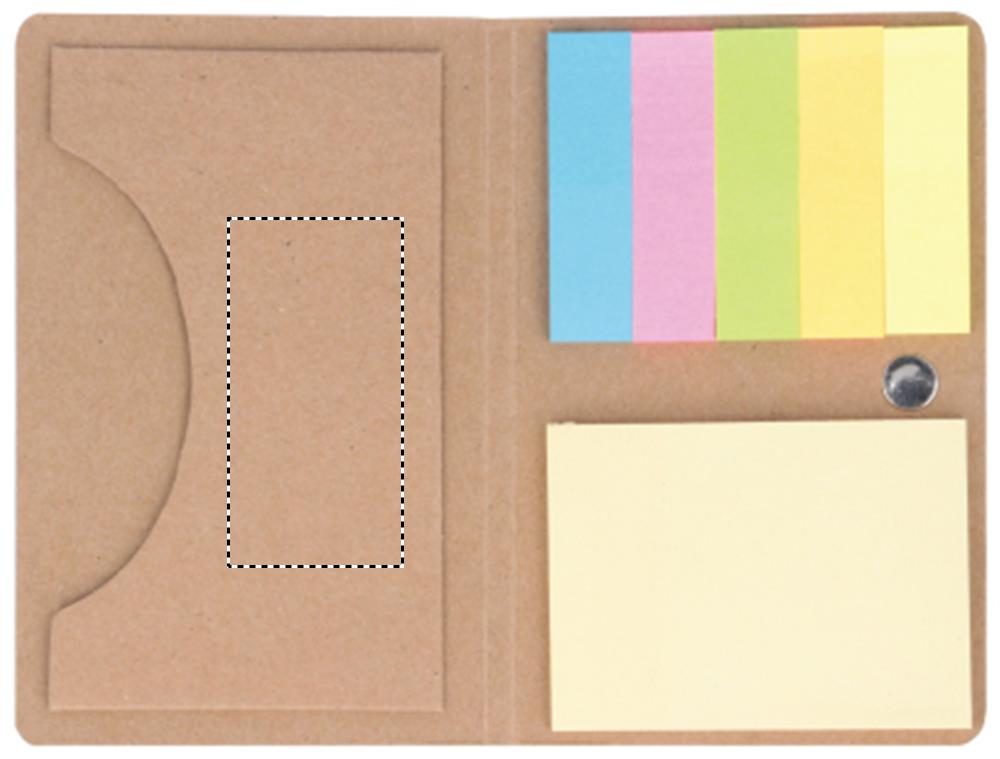 Cardholder in kraft paper. Medium yellow sticky notes pads and 5 assorted colours page markers. Elastic closure strap.