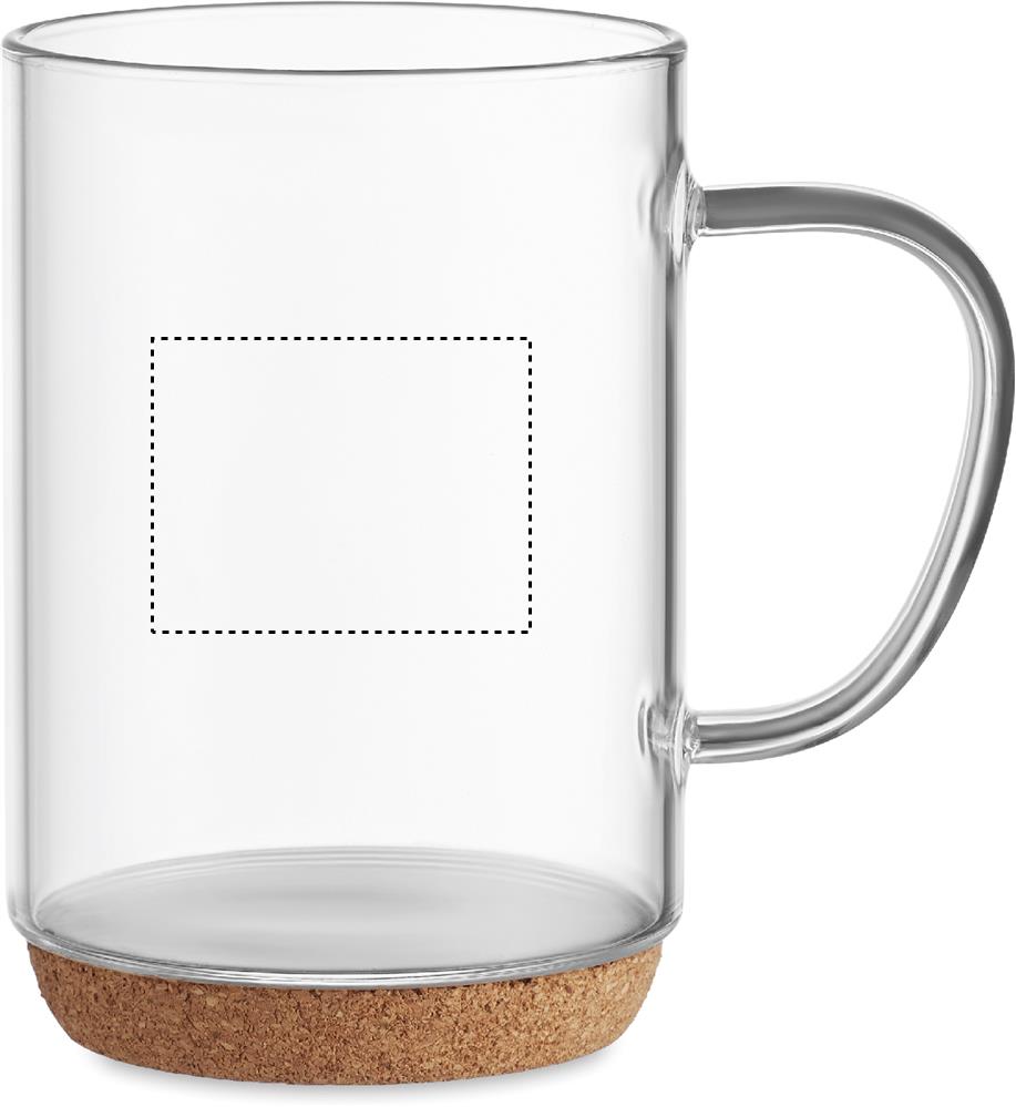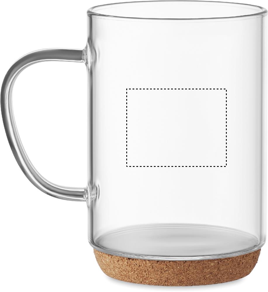 Borosilicate glass mug with cork base. Capacity: 400 ml. Cork is 100% natural material. Due to its structural nature and surface porosity the final print result per item may have deviations.