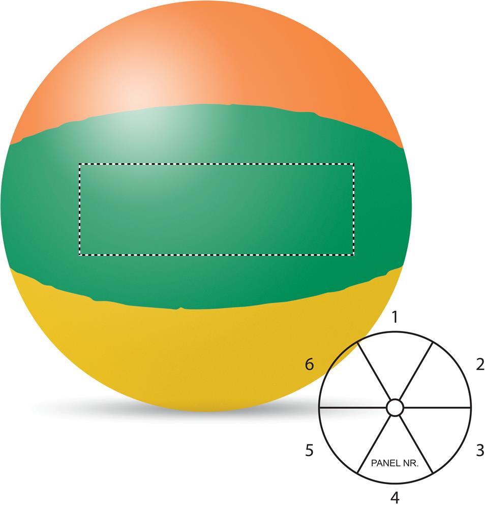 Inflatable beach ball with coloured stripes. Inflated: Ø23,5cm