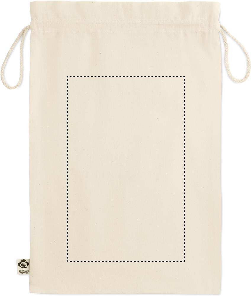 Large gift draw cord bag in organic cotton. Size approx. 30 x 47 cm. 105 gr/m².