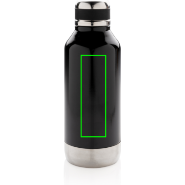 Leakproof vacuum insulated bottle with twist off lid. With unique logo position on the front. 304 stainless steel inner and 201 stainless steel outer keeps your drinks hot 5h and cold 15h. Content: 500ml.