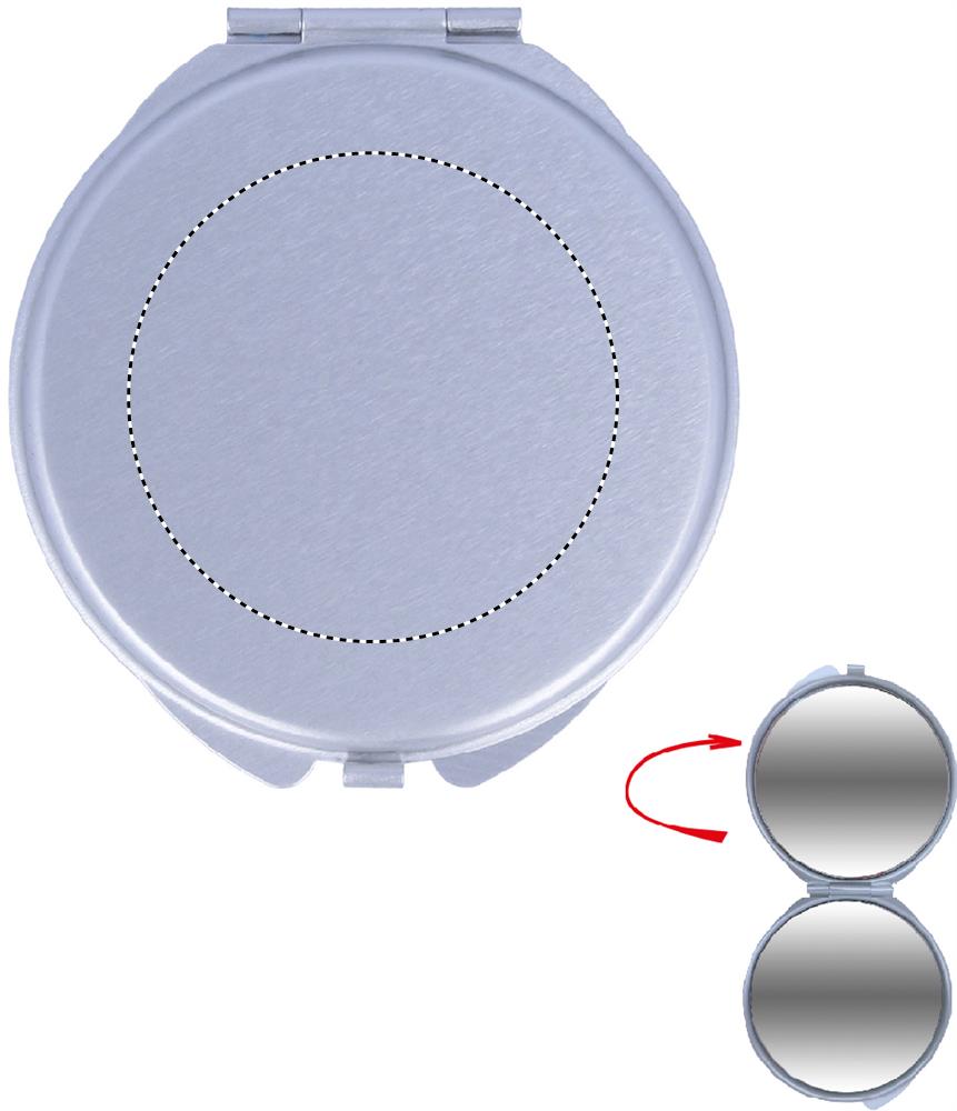Aluminium make-up mirror with standard and magnifying mirrors in velvet case.