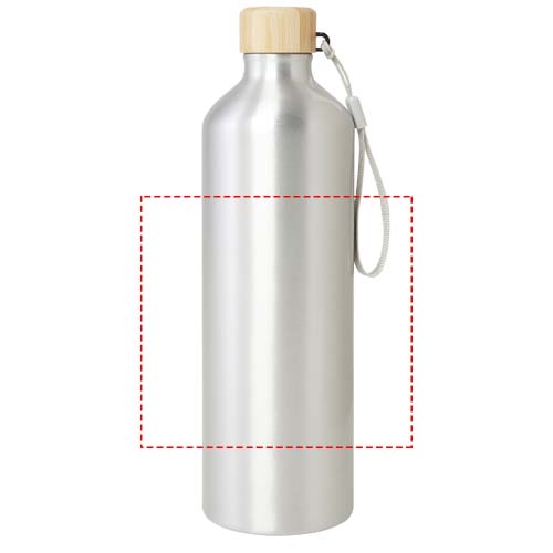 RCS certified recycled aluminium water bottle with a stylish bamboo lid. This lightweight, single-walled bottle comes with a strap for easy carrying. The bamboo is from sustainable, environmentally and socially responsible sources. Capacity is 1000 ml. Hand wash only.
