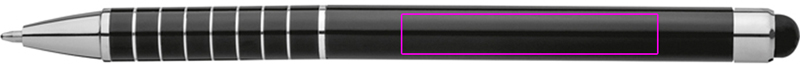 Twist ball metal pen with touch function and blue writing refill. 8 engraved rings make the writing convenient. Your logo will be laser engraved below the clip.