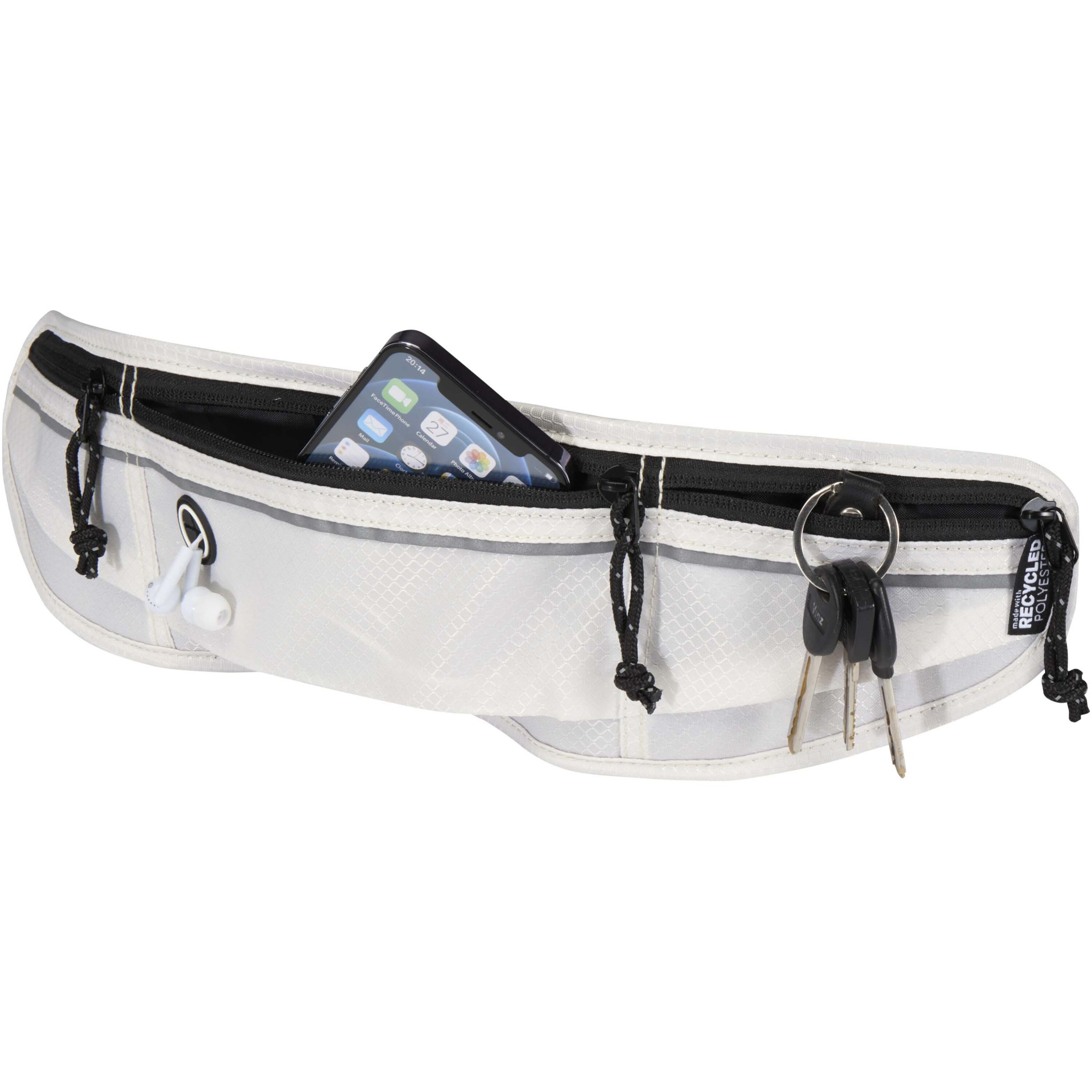 The Nomad running waist pack is made from GRS certified recycled ripstop fabric with a water-repellent finish, GRS certified RPET lining, and reflective elements. It is a compact and lightweight solution for running, hiking, or other outdoor activities. The waist pack features three zipped pockets to keep your phone, earbuds, keys, and other items organised and separate. Reflective details improve visibility during early morning or evening use. The back is made with lightweight, moisture-wicking mesh to increase airflow and reduce sweat build-up. An adjustable, elastic waistband ensures a secure and comfortable fit during movement.