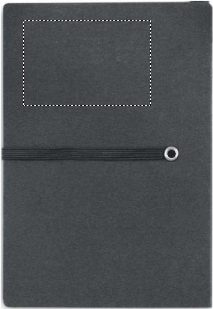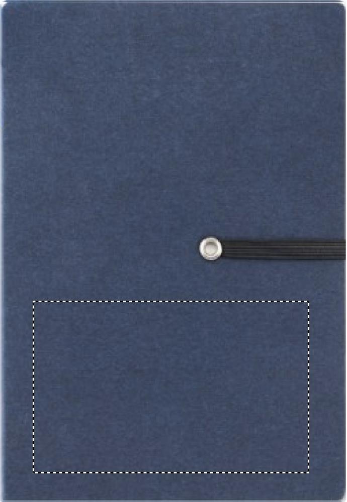 Recycled carton notebook with sticky notes pad and pen. Soft recycled carton cover noebook. Casebound. 140 lined pages (70 sheets). Large and medium sticky notes pads and 4 assorted colours page markers. Matching push button ball pen in recycled carton and ABS details. Black ink. Matching elastic closure strap.