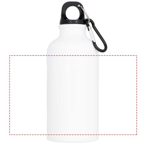 Single walled bottle with twist on lid. The bottle has a special coating for sublimation. Carabiner is not suitable for climbing. Volume capacity is 400 ml.