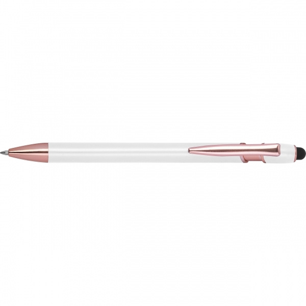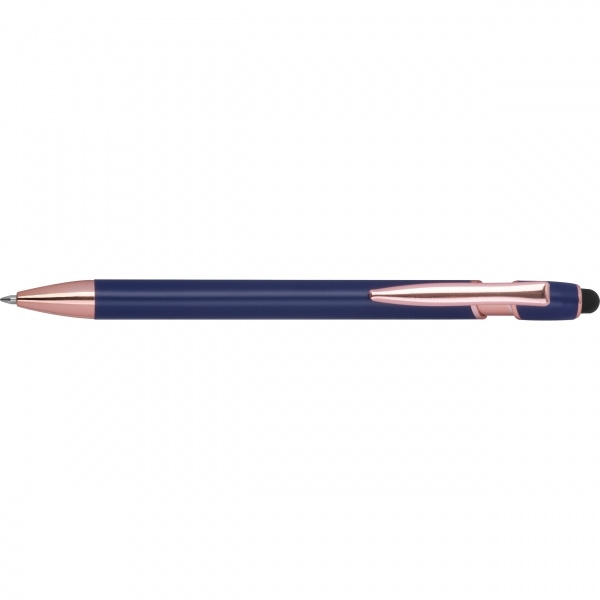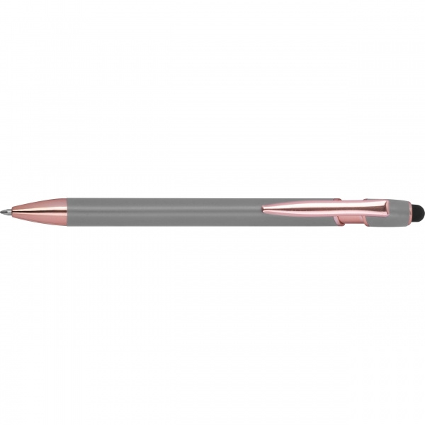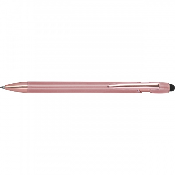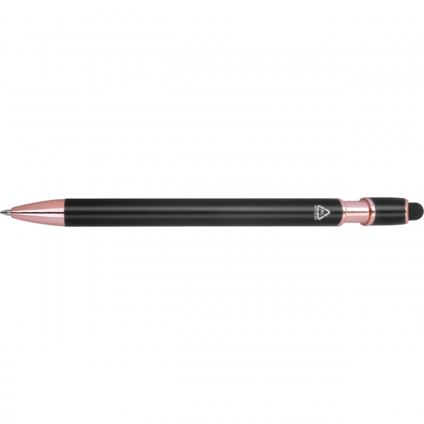 Semi gel pen made from recycled aluminum with touch pen and blue-writing large-capacity refill (1 mm tip). Your logo is applied to the barrel using laser engraving.