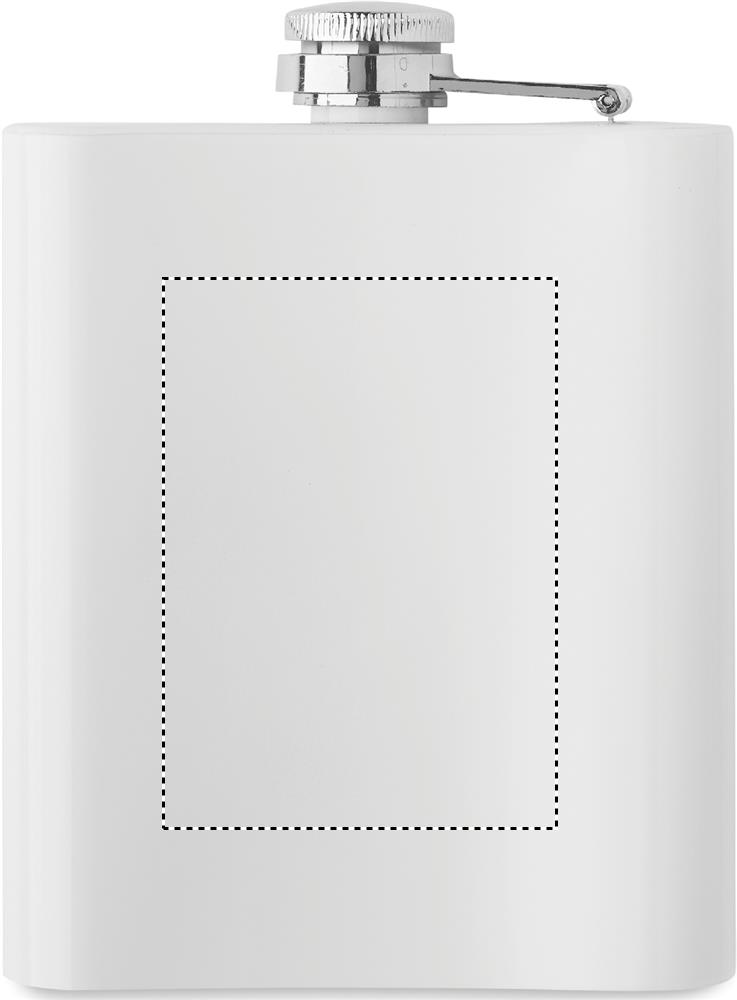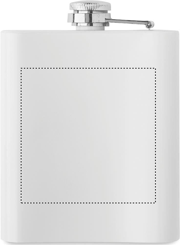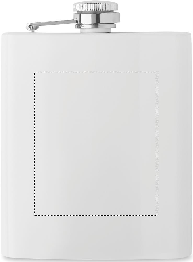 Slim hip flask in recycled stainless steel (90% recycled stainless and 10% stainless steel) with sublimation layer. Single wall. Capacity: 180 ml.