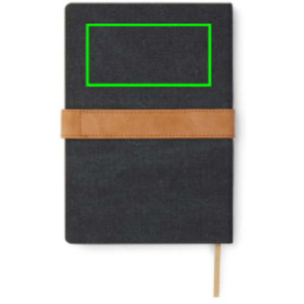 Take notes in style with our A5 notebook, featuring a canvas cover with a convenient PU-band and magnet closure. The notebook contains 80 sheets of 80 gsm RCS recycled paper with lined pages, making it perfect for all your note-taking needs. Made from 65% RCS (Recycled Claim Standard) certified recycled paper, the notebook is a responsible choice. The RCS certification ensures a fully certified supply chain of the recycled materials used, emphasising our commitment to responsible sourcing. The total recycled content of the notebook is based on its total weight.