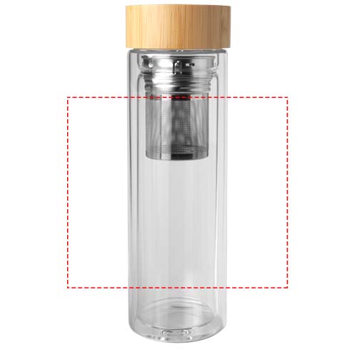 Topeltseinaga boorsilikaatklaasist veepudel koos teetõmmise ja bambusest kaanega. Kasutatav bambus pärineb jätkusuutlikest, keskkonnasõbralikest ja sotsiaalselt vastutustundlikest allikatest. Maht: 400 ml. Tarnitakse taaskasutatud pappkarbis.