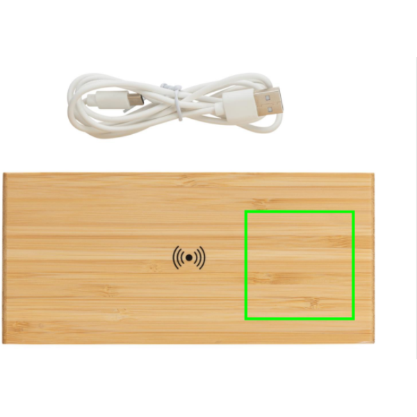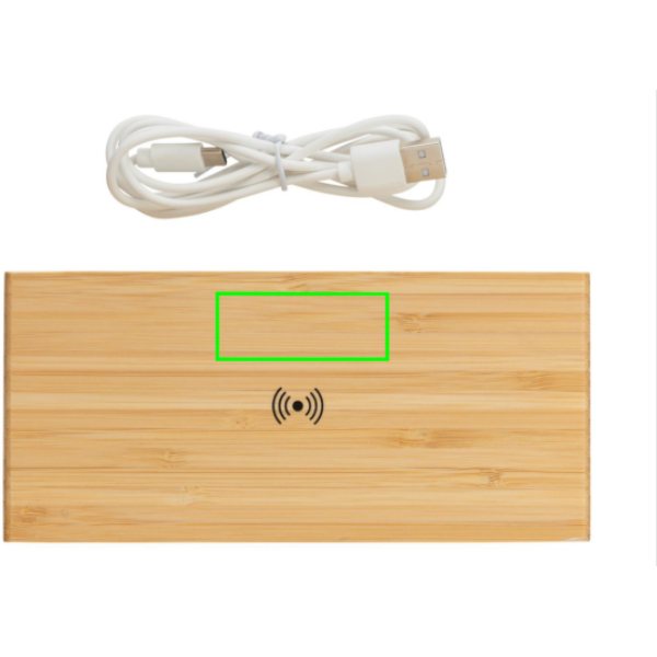 Logo trade firmakingi pilt: Bambusest äratuskell 5W juhtmevaba laadijaga