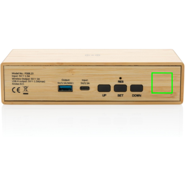 Logo trade ärikingi pilt: Bambusest äratuskell 5W juhtmevaba laadijaga
