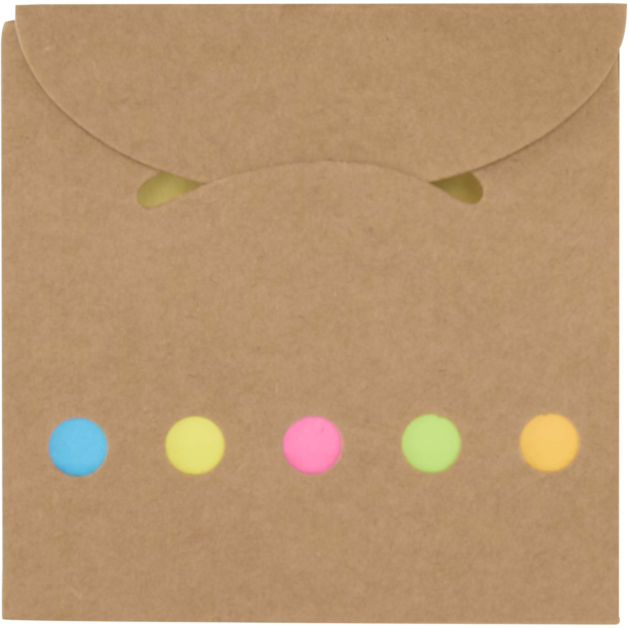 Märkmepaberite komplekt sisaldab 125 väikest (5 x 1,5 cm) kleepmärkmepaberit viies erinevas värvitoonis ja 25 suurt (7,5 x 7,5 cm) kollast kleepmärkmepaberit.