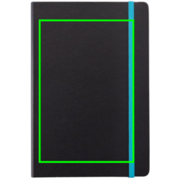 Moodne kõvakaaneline märkmik 160 leheküljega 80g/m2 paberiga. Lehtede küljed sobivad elastse ribaga.