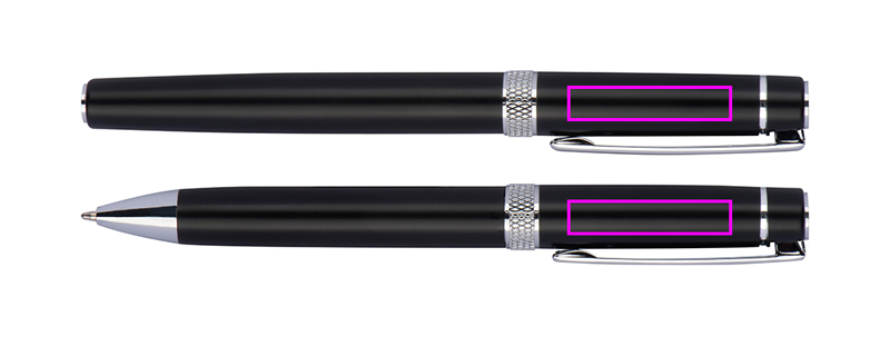Kirjutuskomplekt, mis koosneb sinise kirjutussüsteemi täidisega keeratavast pastapliiatsist ja ümbrises olevast sinisest alumiiniumist rullpallist. Kroomrakendused ja sädelevad dekoratiivsed rõngad annavad komplektile elegantse välimuse. Teie logo graveeritakse mõlemale pliiatsile klambrist paremal.