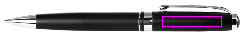 Kvaliteetne metallpliiats, mattmust, läikivate hõbedaste aplikatsioonide ja elegantse korpusega. Graveerime teie logo klipi alla.