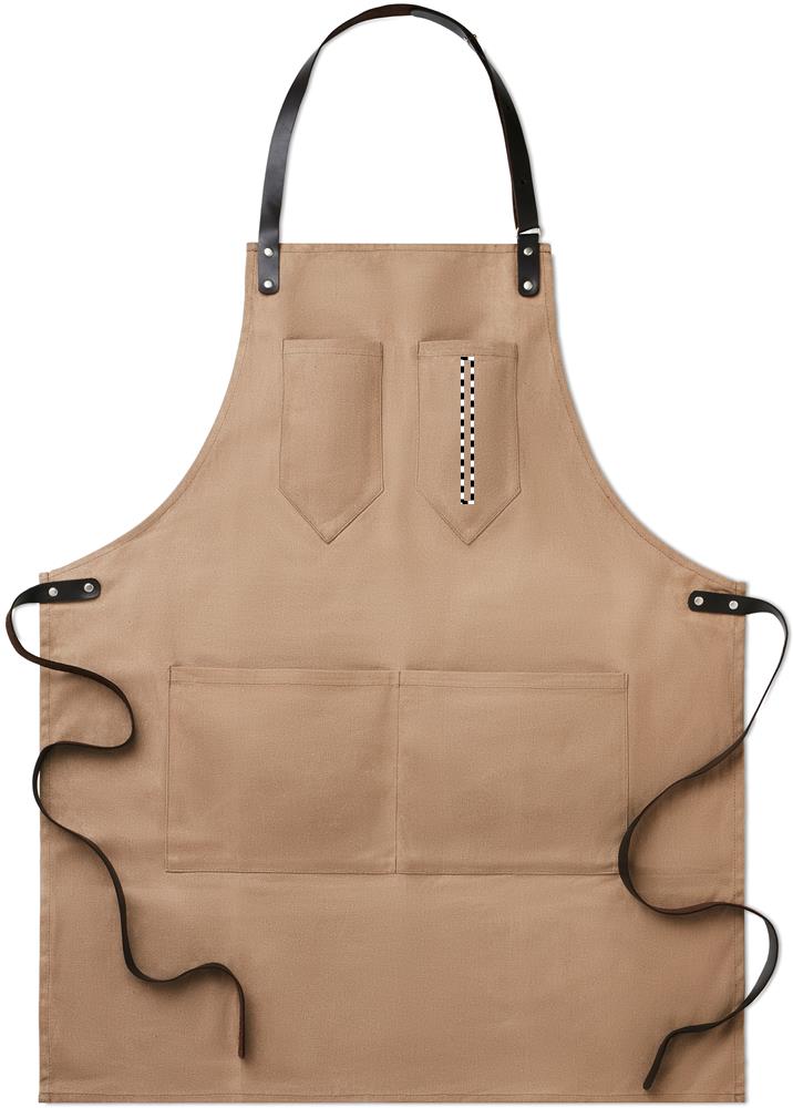 Vahatatud lõuendist põll nahkdetailidega, reguleeritav rihm 2 rinnatasku ja 1 suure madala tasapinnaga taskuga. 12 untsi vahatatud lõuend.