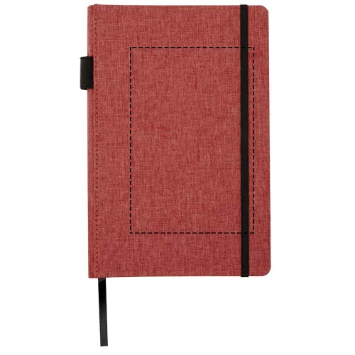 A5 suuruses märkmik kaanega RPET kangast. Sisaldab 96 lehte 70 g/m² vooderdatud paigutusega, pliiatsi aasa ja lindimarkeriga. Pakitud papist varrukasse.