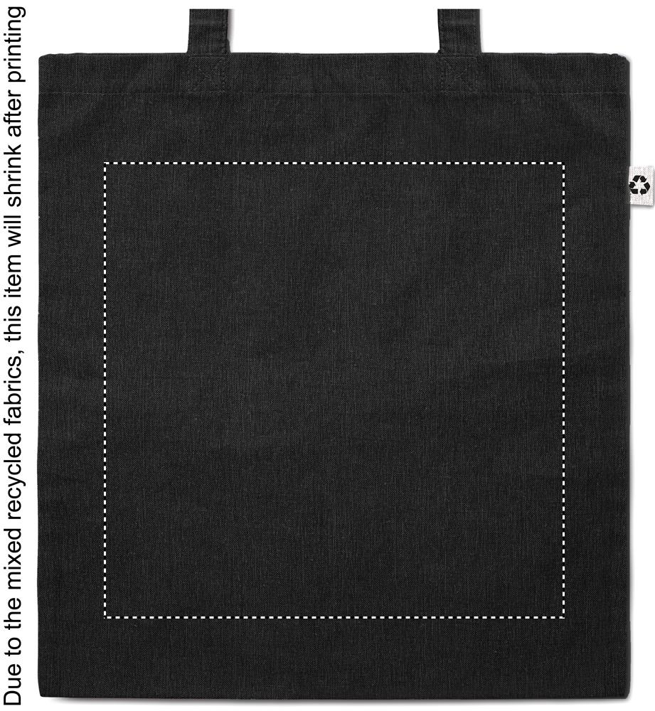 2-tooniline taaskasutatud puuvill (20%) ja taaskasutatud polüester (80%) pikkade sangadega ostukott. u. 140 gr/m². See üksus võib pärast printimist kokku tõmbuda.