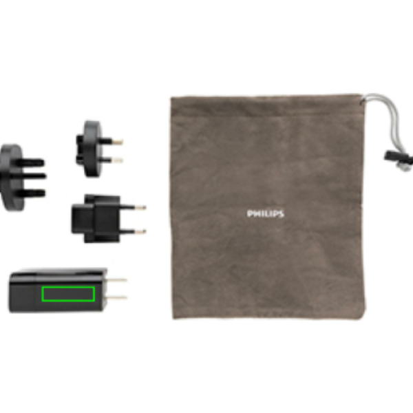 Philipsi ülikiire 30 W PD reisilaadija. Mugava reisikotiga. Kaasas 4 pistikut; integreeritud USA pistik ja vahetatavad AU, UK ja EU pistikud. Sisend: 100-240V, 50-60Hz 0,7A Väljund USB A 5V/2.4A Type-C 5V/3A, 9V/2A, 12V/1.5A. Pakitud Philipsi kinkekarpi.