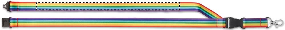 Rainbow RPET kaelapael metallist konksu, eemaldatava pandla ja turvarihmaga.