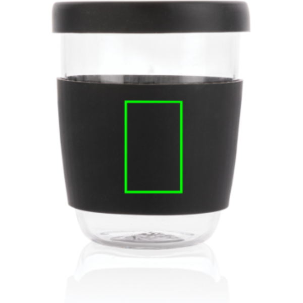 Nautige oma kohvi tööl või kodus selles Ukiyo boorsilikaatklaasis, millel on silikoonkaane ja ümbris. Tassil on kena käepide ja õhuke kuju. Väike õhutusava kaanes laseb aurul välja pääseda, et vältida rõhu suurenemist. BPA vaba. Mahutavus 360ml.