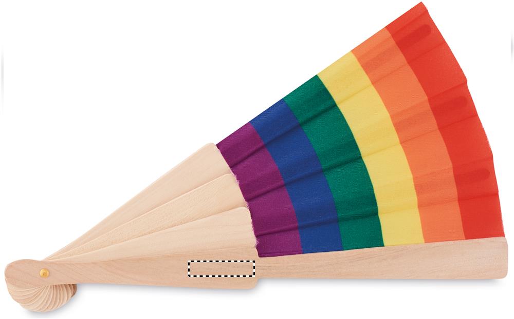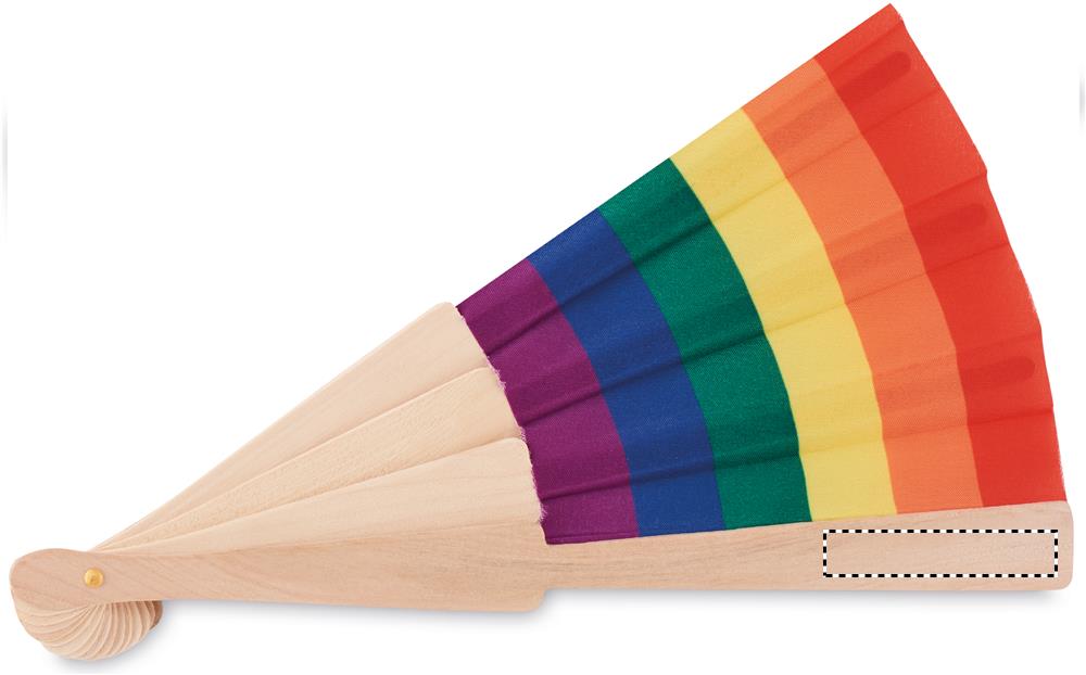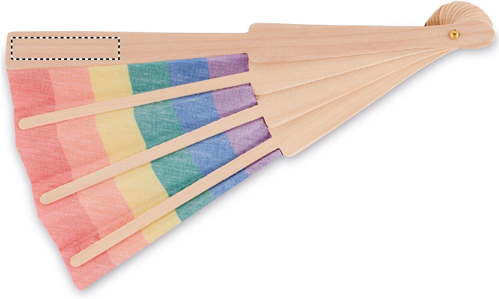 Puidust ja vikerkaaremustriga polüesterkangast käsitsi käsiventilaator.