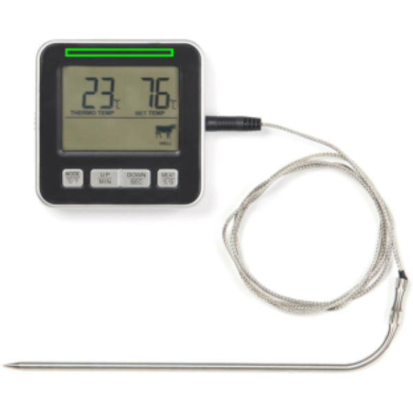 Serveeri täiuslik eine selle käepärase toiduvalmistamistermomeetriga. Olenemata sellest, kas röstite mahlakat rostbiifi või küpsetate spetsiaalset kooki, on see mitmekülgne termomeeter köögis hindamatu väärtusega, olenemata sellest, kas küpsetate ahjus, grillite või küpsetate. Taimeri funktsioon ja äratusfunktsioon aitavad teil kontrolli all hoida. Termomeeter kuvab ka Celciuse ja Farenheiti kraadi, et saaksite seda vastavalt oma vajadustele kohandada. Ükski köök pole täielik ilma selleta.