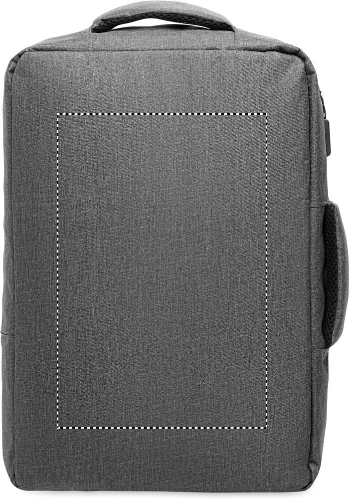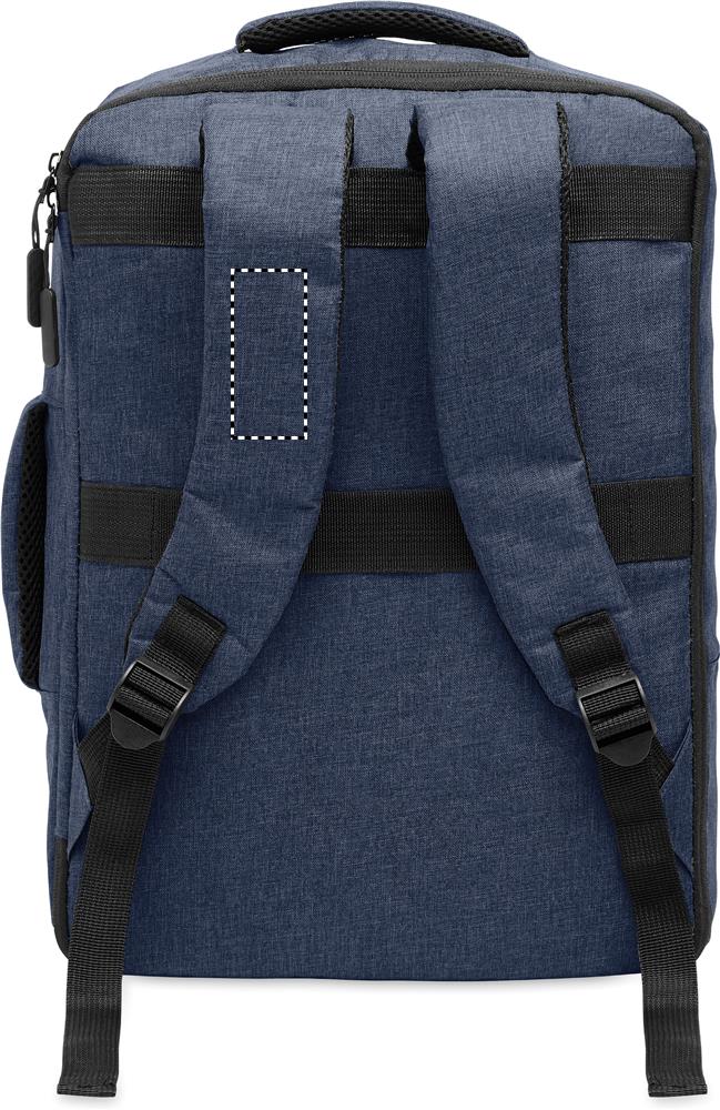 Ohut 15 tuuman kannettava reppu 300D RPET:stä ja 210D RPET-vuorella. Sisältää kannettavan tietokoneen lokeron, 2 sisäistä liukutaskua, 2 sisäistä kynätaskua ja 2 pehmustettua kantokahvaa. Pehmeästi pehmustetut selkä- ja olkahihnat. Trolleypidike kääntöpuolella.