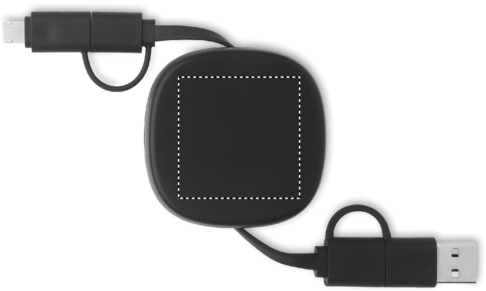 60 W sisäänvedettävä kaapeli kierrätetyssä ABS-kotelossa. Tulo: 2-in-1 Type-C ja Type-A. Lähtö: Type-C ja micro-B (2 in 1 pin). Kaapelin pituus: 80 cm.