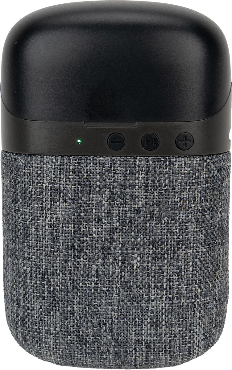 Logo trade mainoslahja ja liikelahja tuotekuva: Bluetooth-kaiutin HF01 sisäänrakennetuilla nappikuulokkeilla 2-in-1