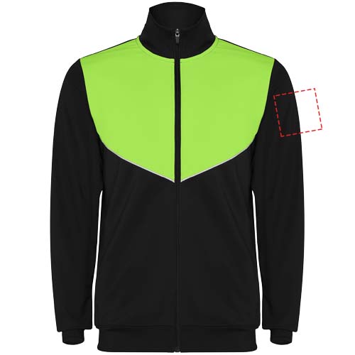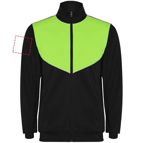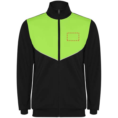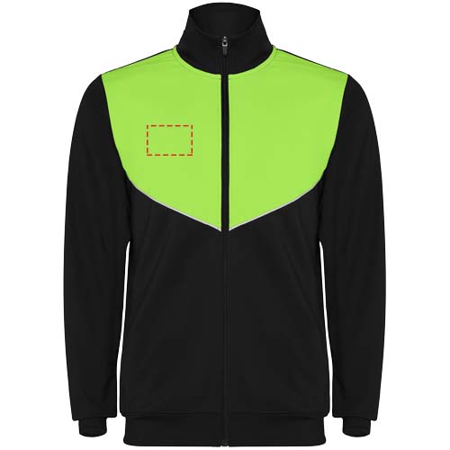 Verryttelyasu kevyestä ja joustavasta kankaasta. Takki kontrastiväreillä ja ommelreunoilla rinnassa. Korkea kaulus kontrastivärisillä saumoilla. Vetoketju keskellä edessä. Sivutaskut. 2x2-resori hihansuissa ja vyötäröllä. Housut joustavalla vyötäröllä ja kiristysnyörillä. Kontrastivärinen sivukappale ommelreunuksella. Vetoketjut lahkeissa.