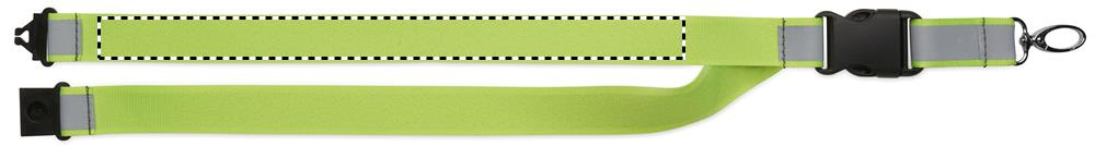 Heijastava RPET-polyesterikaulanauha, jossa 2,5 cm:n hihna, metallikoukku, irrotettava PP-solki ja turvalukitus. Vain mainoskäyttöön.