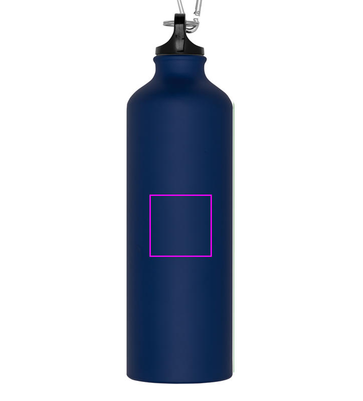 Vuotamaton alumiinista valmistettu juomapullo karabiinilla ja tilavuus 800 ml. Logosi laseroidaan pulloon.