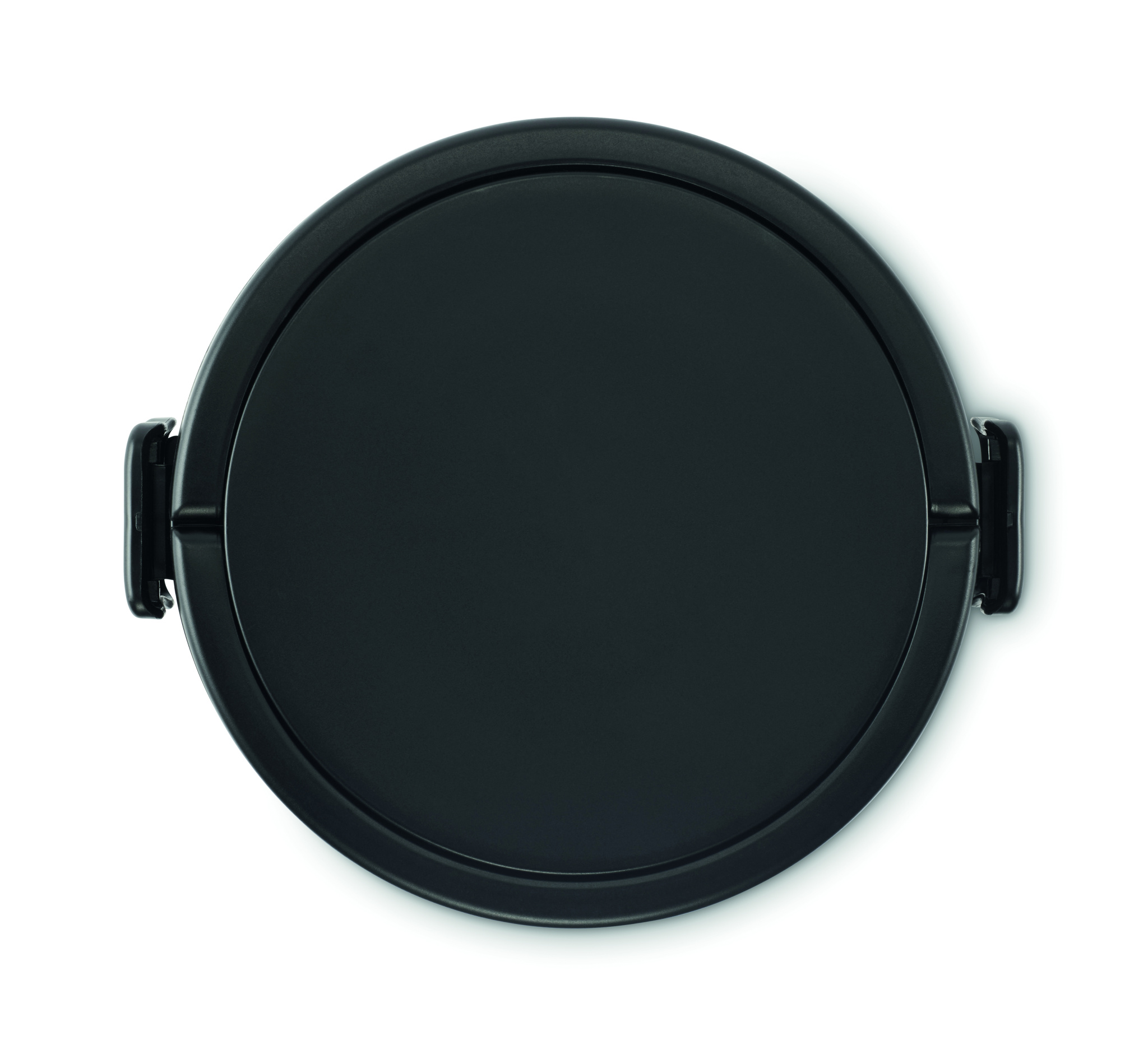 Kaksikerroksinen pyöreä lounasrasia PP-muovista, sivussa klipsukiinnitys ja kahvat. Sisältää valkoiset sisäkannet. Tilavuus 250 ml yläosasta, 700 ml alaosasta.