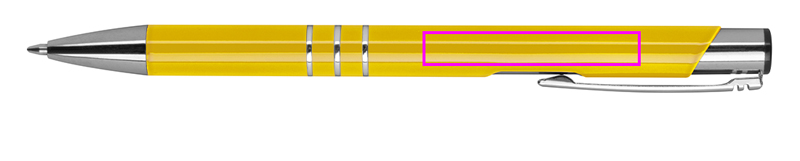 Täysin lakattu metallikuulakynä, jossa on 3 koristerengasta ja suuri kapasiteetti sinikirjoituksella. Logosi kaiverretaan leikkeen oikealle puolelle.