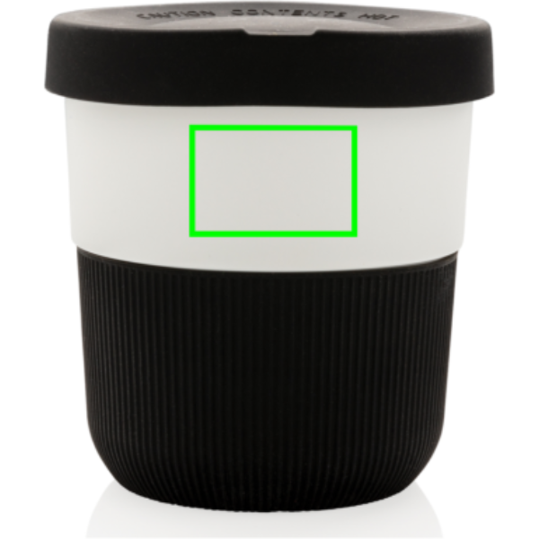 Ympäristöä säästävä vaihtoehto perinteisille mukeille! Tyyliä ja käytännöllisyyttä aamuisille työmatkoillesi – tässä PLA-kahvimukissa kannat kuuman juoman helposti mukanasi. Valmistettu kasvimateriaalista (PLA), joten tyylikkyyden lisäksi muki on ystävällinen planeetallemme. Kätevä ja mukava silikonikahva ja kansi. Sopii käytettäväksi useimmissa kahviautomaateissa. 100-prosenttisesti melamiiniton. Tilavuus 280ml.