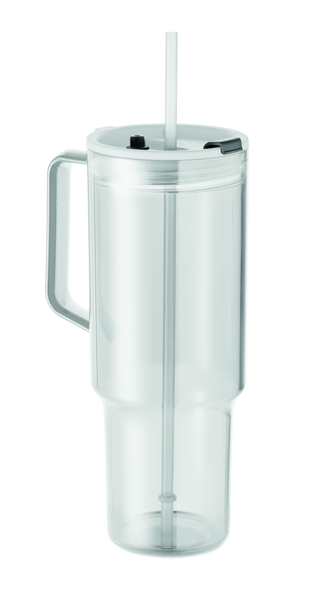 Muki RPET-muovia, pillikannella ja PP-pillillä. Tilavuus: 1200 ml.