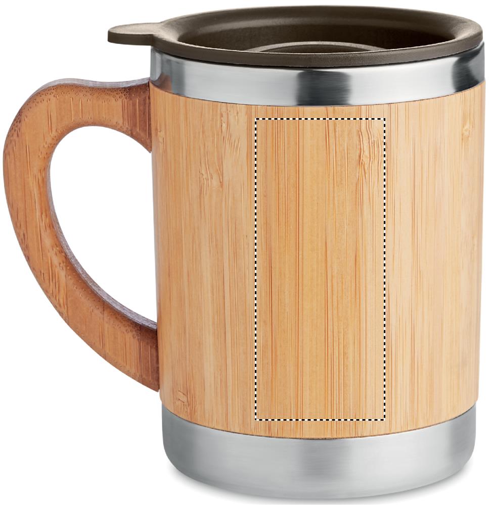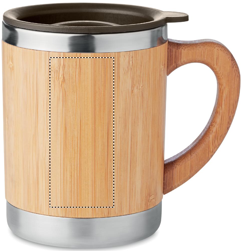 Kaksoisseinämällä ruostumaton terästermosmuki, jossa bambukuori ja liikutettava juoma-aukko. Tilavuus 300 ml. Koska bambu on luonnollinen materiaali, tuotteen väri voi vaihdella.