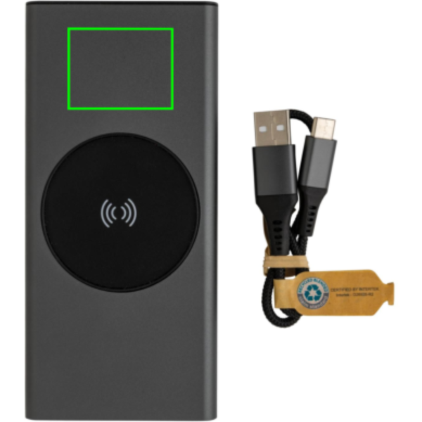 Ultranopea varavirtalähde, joka on valmistettu RCS (Recycled Claim Standard) -sertifioidusta kierrätetystä alumiinista ja ABS:stä. Kierrätetyn materiaalin kokonaismäärä: 28% tuotteen kokonaispainosta. Alumiini ei menetä ominaisuuksiaan kierrätysprosessissa, ja sitä voidaan kierrättää loputtomasti. Sisältää pitkäkestoisen A-luokan 10000 mAh litiumpolymeeriakun. C-lähtöportti tukee jopa 18W nopeaa latausta ja nopeaa uudelleenlatausta 3 tunnissa. Langaton laturi tukee latausta 10W asti. Virran merkkivalot kertovat, milloin on aika ladata tuote uudelleen. Tuote ja lisätarvikkeet 100% PVC-vapaita. Sisältää tyypin C latauskaapelin valmistettuna RCS-sertifioidusta kierrätetystä alumiinista, TPE:stä ja PET-materiaalista. Pakattu FSC® sekoituksesta valmistettuun pakkaukseen. USB lähtövirta 5/3A, 9V/2A. 12V/1.5A. Tyypin C lähtövirta: 5V/3A, 9V/2A, 12V/1.5A. Tyypin C tulovirta: 5V/3A, 9V/2A, 12V/1.5A. Mikro USB tulovirta: 5V/2A, 9V/2A, 12V/1.5A.