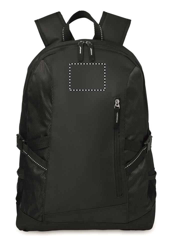 600D tietokonereppu rip-stop yksityiskohdilla, sisältää 15 tuuman kannettavan tietokoneen lokeron, vetoketjullisen etutaskun ja 2 sivulokeroa. Säädettävät olkahihnat.