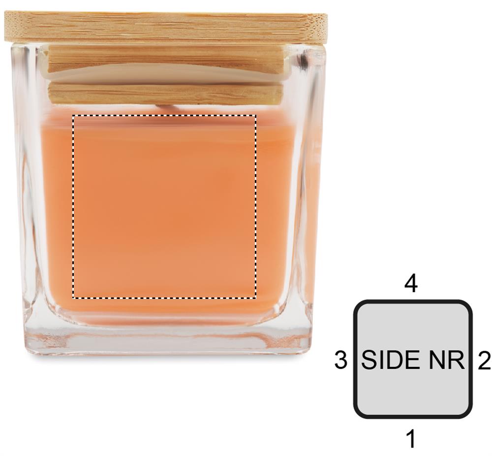 Tuoksuva kasvipohjainen vahakynttilä nelikulmaisessa lasipurkissa, jossa on bambukansi. 50 g. Paloaika: 8 tuntia.