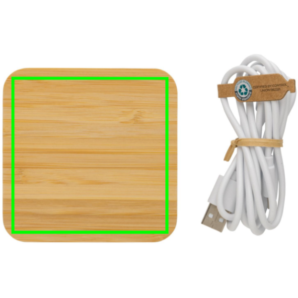 Greitas 10 W belaidis įkroviklis su FSC® 100% bambuko išorė. Su dviem USB prievadais priekyje. Belaidis įkrovimas suderinamas su naujausios kartos Android, iPhone 8 ir naujesnėmis versijomis. Prekė ir priedai be PVC. Įskaitant 150 cm C tipo įkrovimo laidą, pagamintą iš RCS sertifikuoto perdirbto TPE. Supakuota į FSC® mix kraft dėžutę. Type-C in; Įėjimas 5V/2A; 9V/2A; Belaidė išvestis 5V/1A;9V/1.1A (10W) USB A išvestis: DC5V/2A