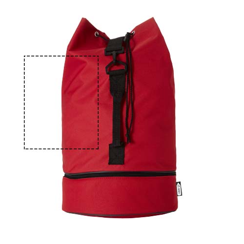 Vandeniui atsparus jūreivio krepšys iš perdirbto PET plastiko su erdviu 20 litrų pagrindiniu skyriumi su užsegimu, šonine rankena ir reguliuojamu peties dirželiu. Taip pat yra atskiras apatinis skyrius su užtrauktuku smulkesniems daiktams.