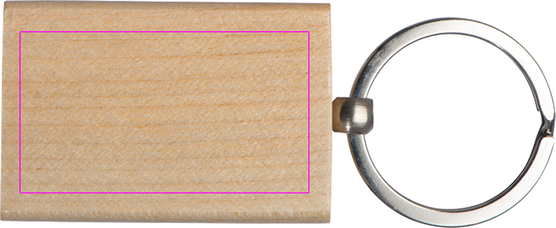 Прямоугольный брелок из бука с кольцом для ключей. Лазерная гравировка отлично выделит ваш логотип.