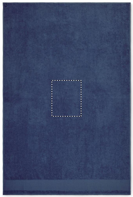 Bath towel made of 100% cotton, 380 gr/m² fabric with cotton hanger loop. Soft and absorbent design. Size 100 cm x 150 cm.